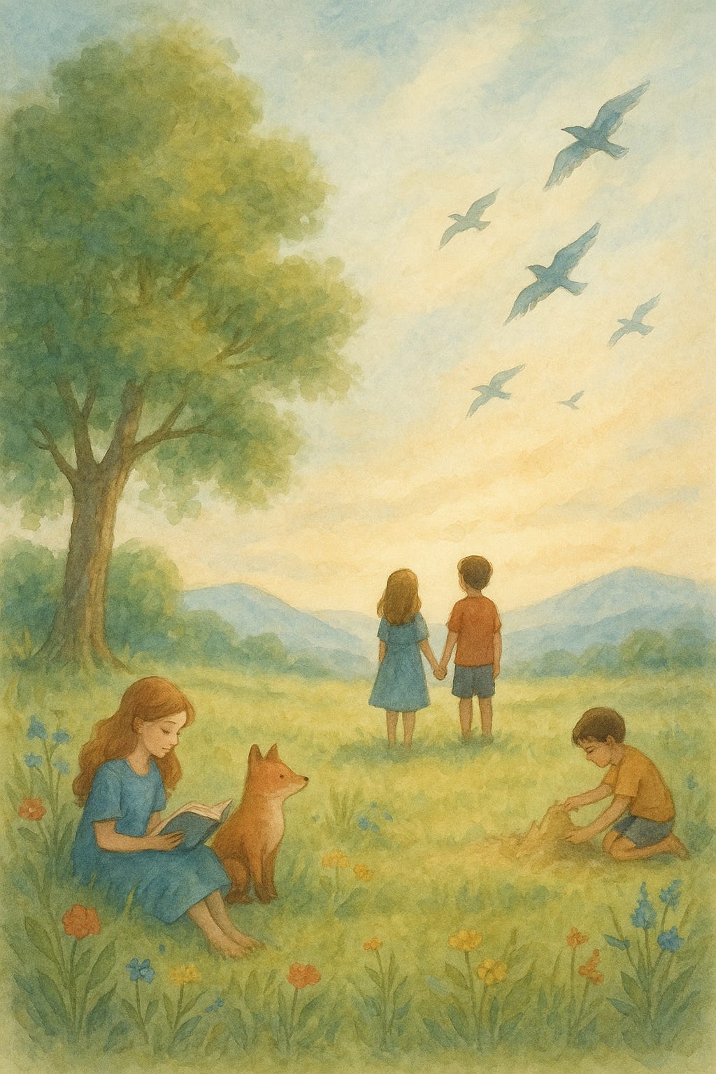 Abriremos escuelas en los bosques y bibliotecas en los prados. Veremos juntos el amanecer y el atardecer tomados de la mano. Respiraremos libres el aire de la cima, puro y cortante. Leeremos libros e inventaremos cuentos. Haremos corros cantando al viento.